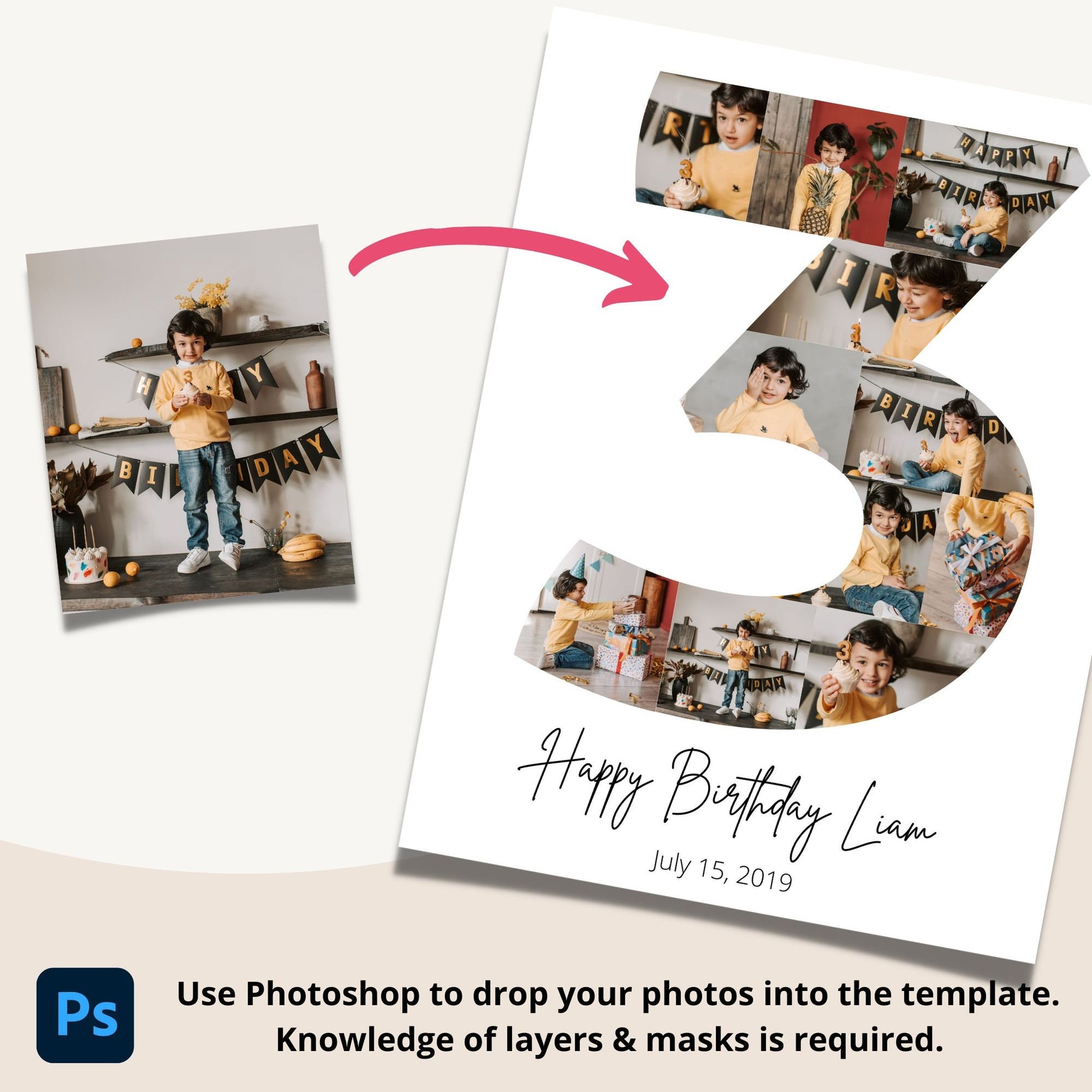 Third Birthday Photo Collage Template - Canva & Photoshop Instant Download